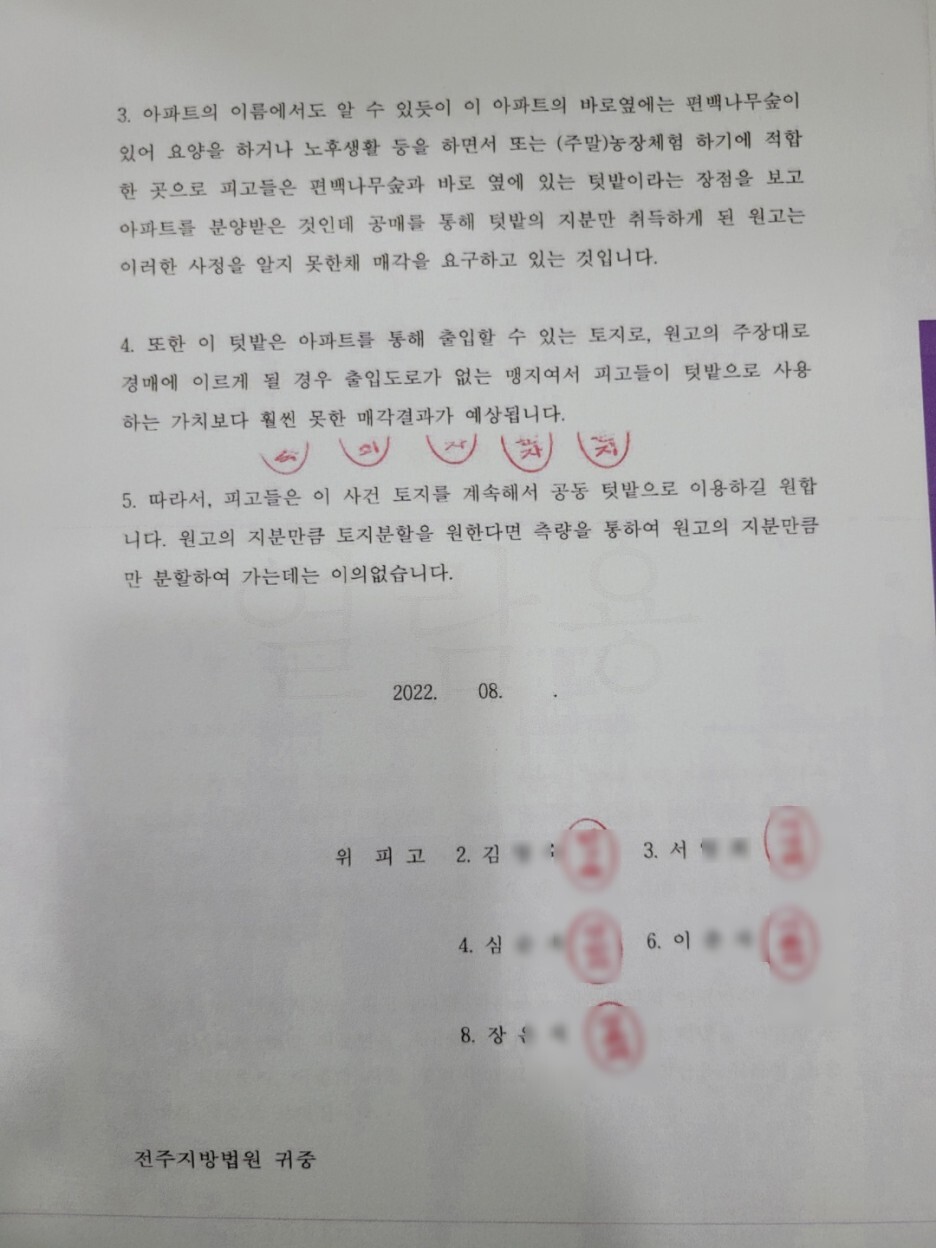 피고10인 중 5인의 답변인데 장ㅅㅅ이 포함되어 있다.