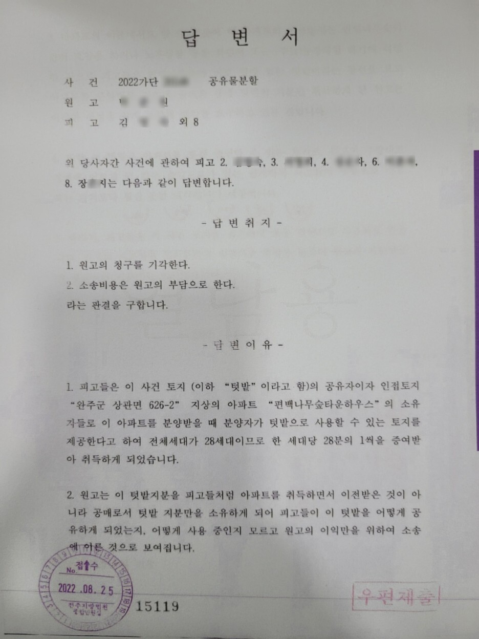 피고10인 중 5인의 답변인데 장ㅅㅅ이 포함되어 있다.