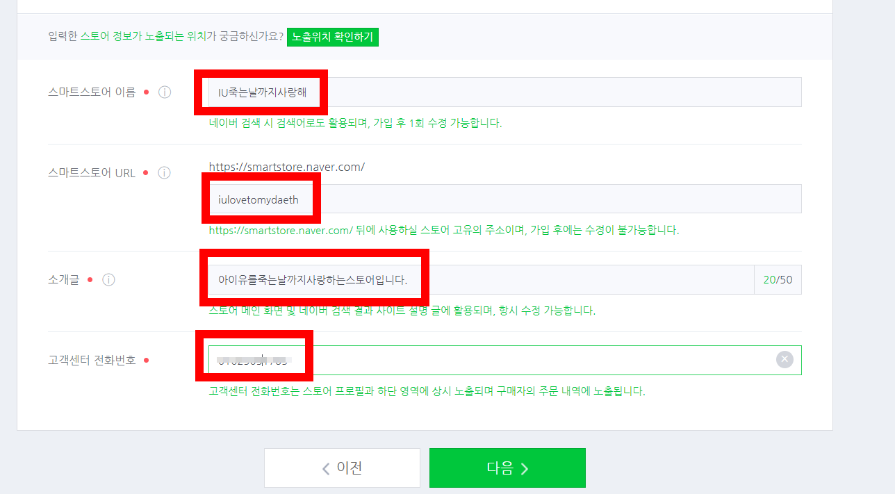 그리고 고객센터 전화번호는 사업용 폰 번호를 쓰자.