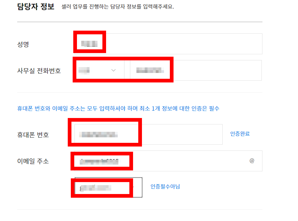 담당자 정보를 모두 입력하고 스크롤을 내린다.