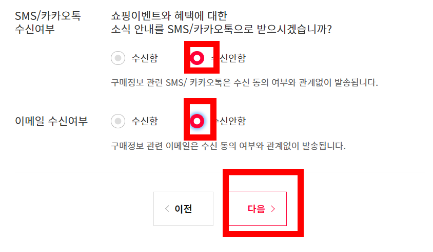 이것 저것 수신은 귀찮으니까 받지 않도록 하고 다음을 누른다.