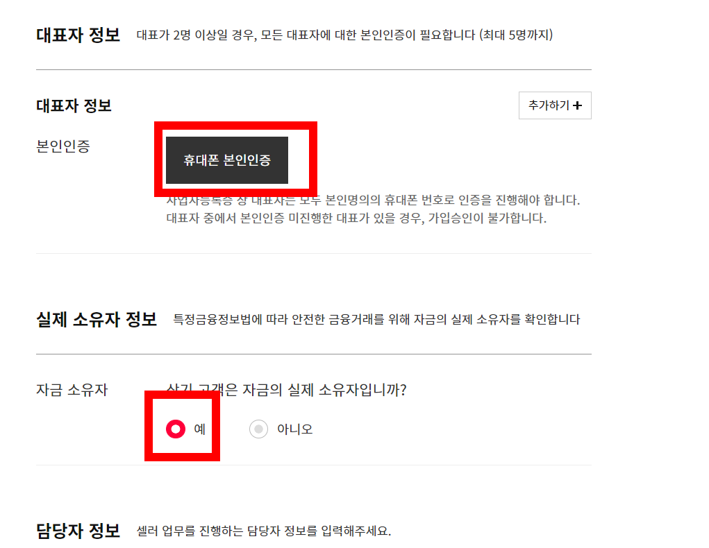 만약 사업자 인증에서 대표자와 불일치 하여 인증이 안된다고 뜨면